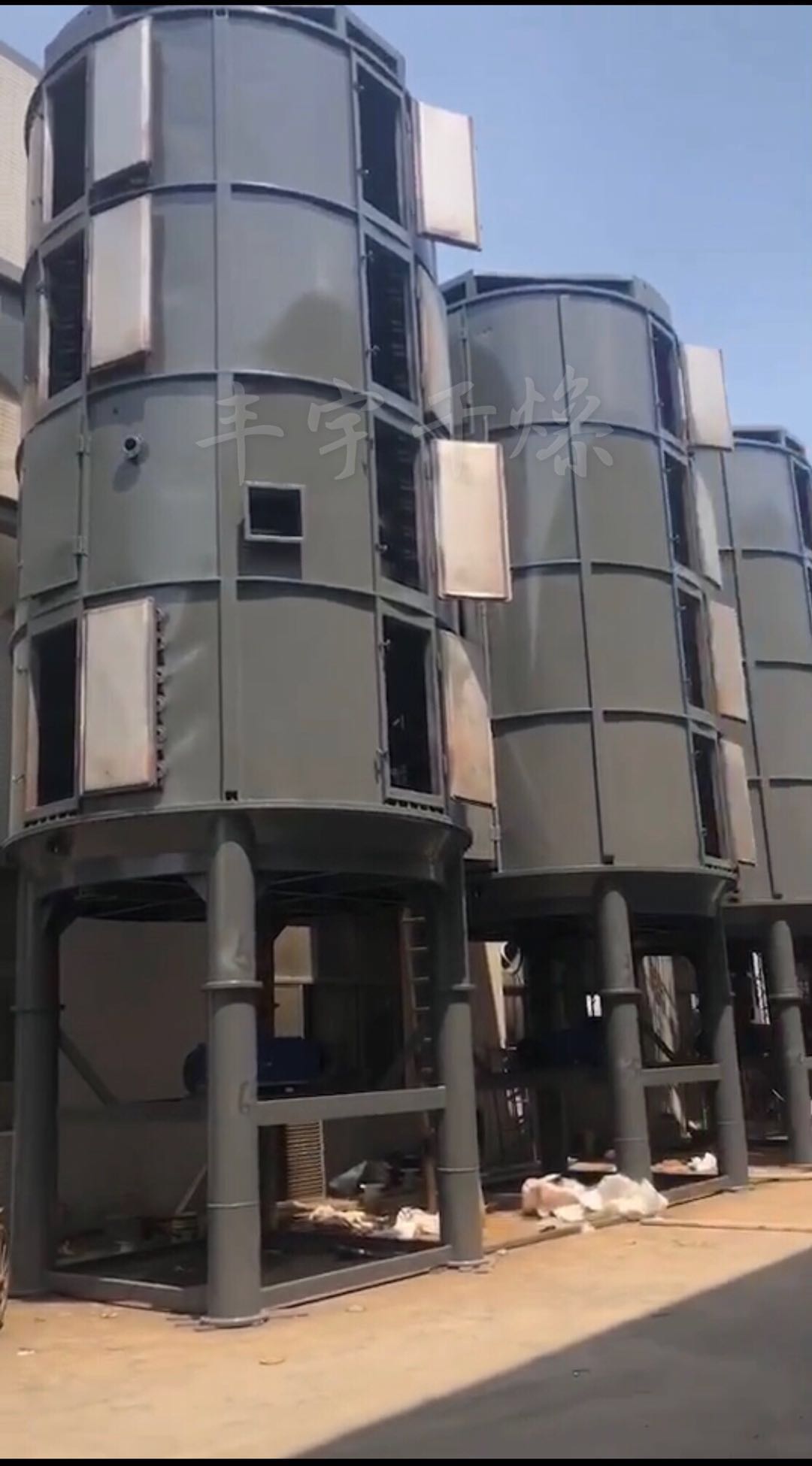 4、安裝方便、占地面積小。干燥器整體出廠,整體運輸,只需吊裝就位,安裝定位非常容易。由于干燥盤層立式布置,立式安裝,既使干燥面積很大,占地面積也很小。