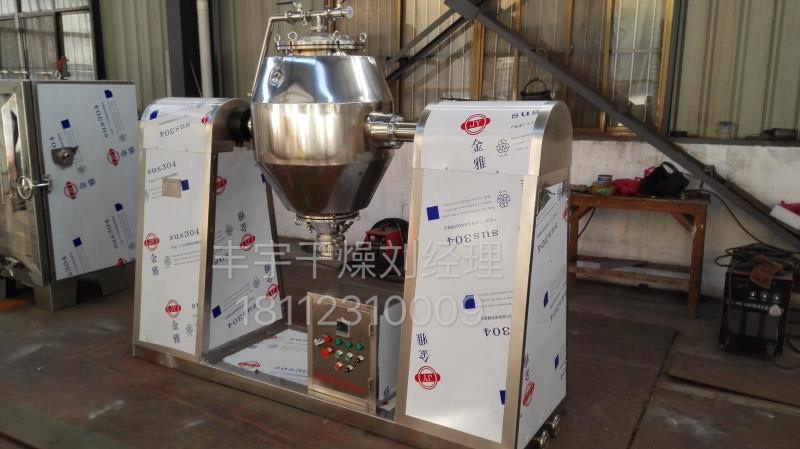 雙錐回轉真空干燥機為雙錐形回轉罐體,設備中間為圓柱形,兩端為圓錐形,圓錐頂部一頭設計為敞開式投料(兼做人孔),另一端為蝶閥出料。罐體內、外共分三層,中間夾套加熱介質可以是蒸汽、循環熱水或導熱油,保溫層為中堿超細玻璃棉,耗能極少;內層投放物料。工作時罐內處在真空狀態下,向夾套內通入導熱油、熱水或蒸汽等熱媒進行加熱,熱量通過罐體內壁傳遞給濕物料。